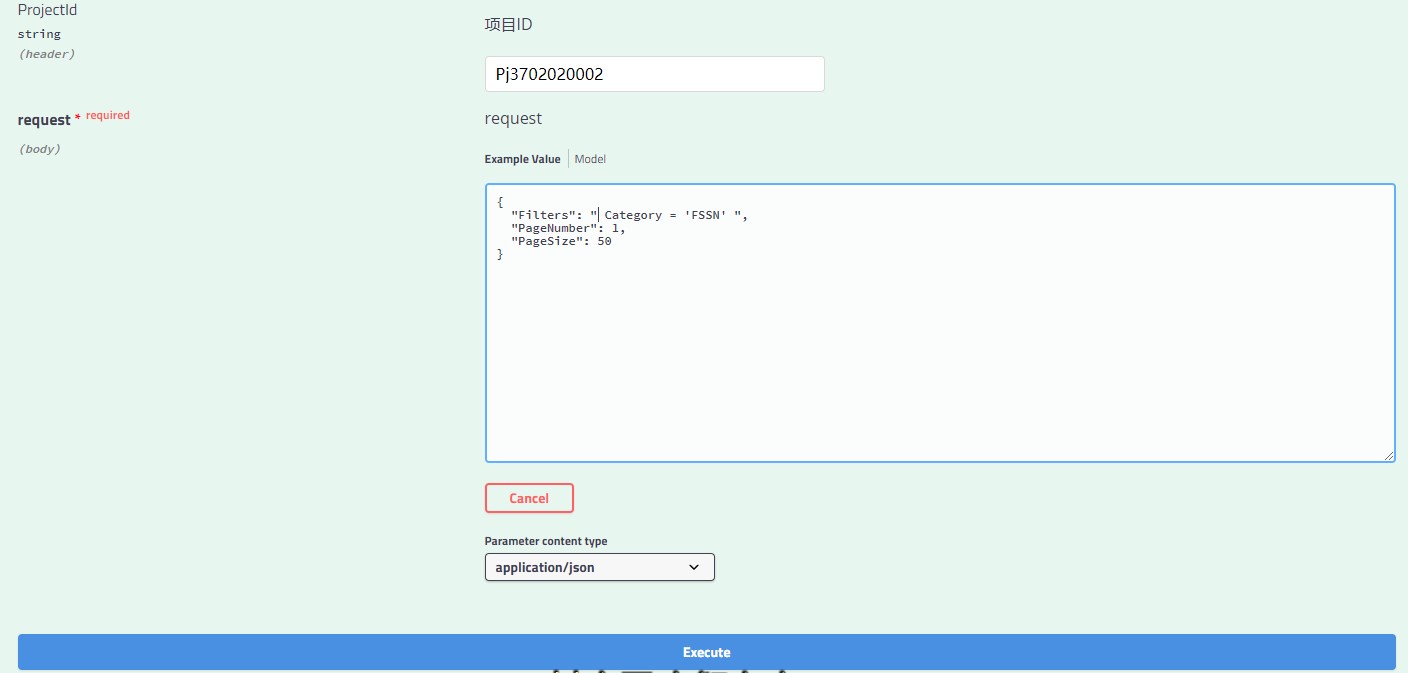Projection 指定后返回的属性,有些时候并不想把某些对象所有信息点都查出来,只是用几个属性,提高数据交互质量可以指定需要的属性,例如: ```metadata json { "Filters": "ProjectId = 'Pj3702020002' and Category = 'FSSN' ", "PageNumber": 1, "PageSize": 50, "Projection": [